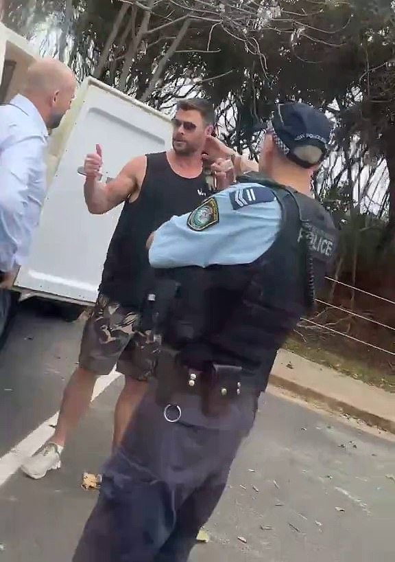Se ha visto a la estrella de Hollywood hablando con la policía en el estacionamiento de la reserva de cabeza rota a solo 9 km al sur de su propia ciudad de Byron Bay.