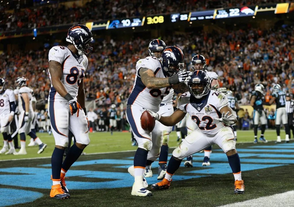 C.J. Anderson, graduado de Bethel High, de los Denver Broncos, lleva el balón para un touchdown en tiempo extra para vencer a los New England Patriots 30-24 el domingo. – Dustin Bradford – Getty Images