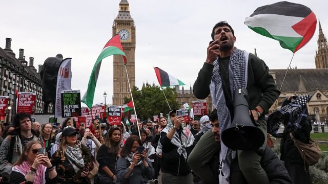 Incluso cuando las familias de las víctimas de la sinagoga de Hiton Park estaban preparando sus servicios funerarios, los trabajadores palestinos estaban listos para otra marcha en Londres.