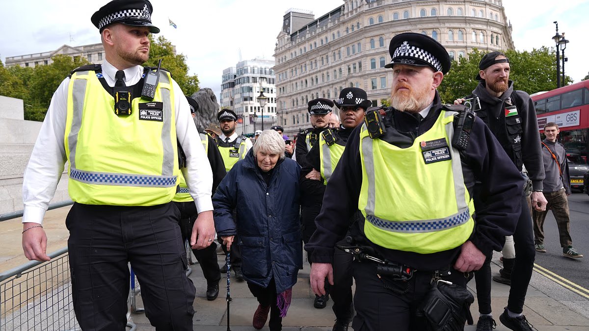 Los oficiales de policía detuvieron una protesta en Trafalgar Square el 425 de octubre en apoyo de la acción palestina