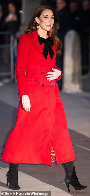 En el servicio Together at a Christmas Carol de este año (izquierda), Kate adoptó un conjunto festivo y familiar con un nuevo toque.
