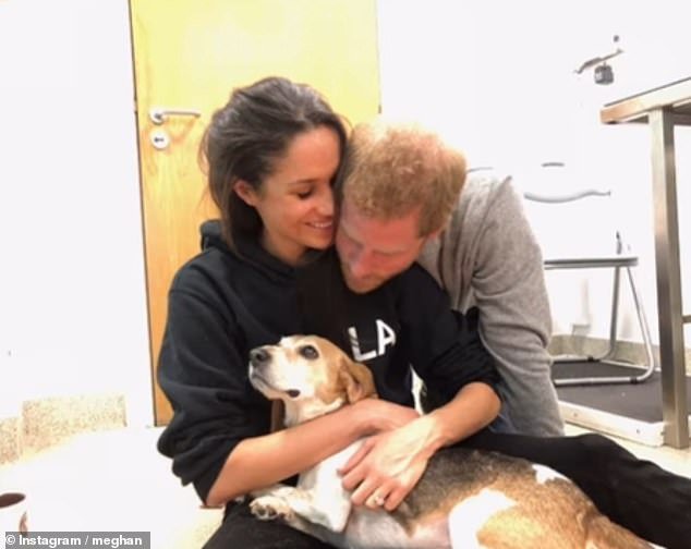 El montaje proporcionó una dulce visión de la vida hogareña de los Sussex con su dulce beagle, Guy, a lo largo de los años.