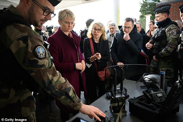 El secretario del Interior, Yavet Cooper, en una pantalla de teléfono con drones, y su equivalente en francés Bruuno Retailue muestra una imagen de calor de un grupo para visitar el Gendermarry de Leattiete ayer