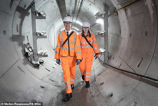 Ed Miliband y Angela Rainner mientras visitan London Power Tunnels en Old Kent Road en Londres