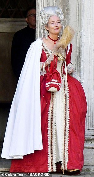 Dame Emma Thompson detuvo todas las paradas en el carnaval de Venecia porque donó el dramático vestido de época.