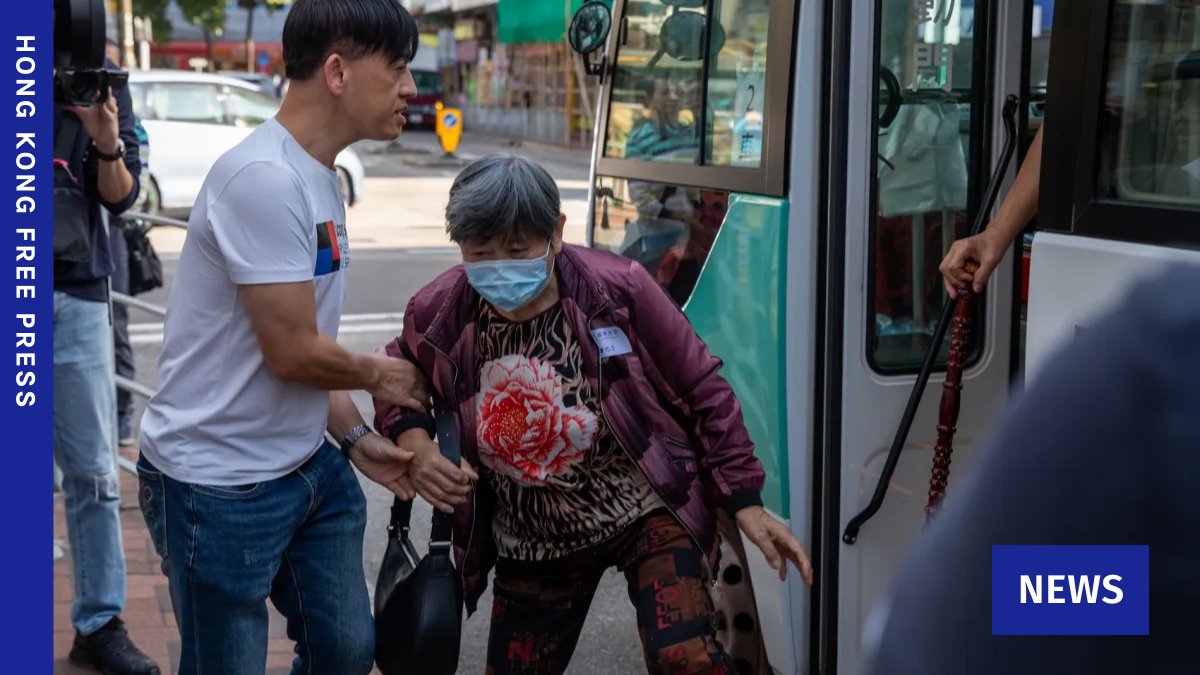 Un anciano hongkonés se baja de un autobús frente a un colegio electoral para las elecciones del consejo de distrito “solo para patriotas” de Hong Kong el 10 de diciembre de 2023. Foto: Kelly Ho/HKFP