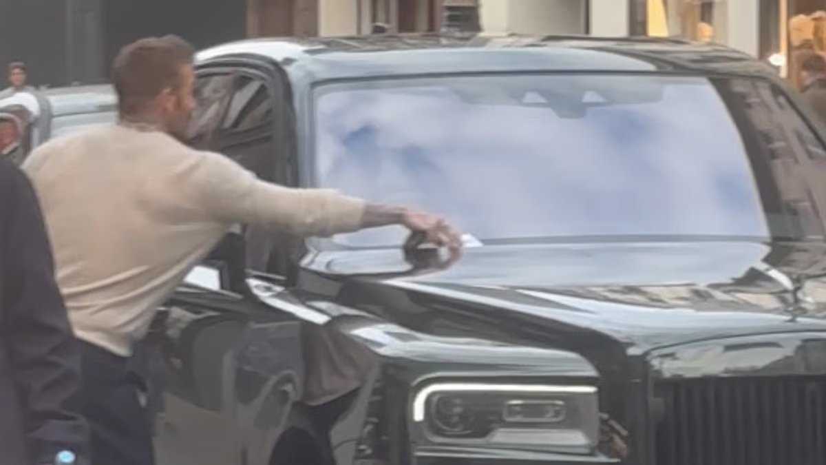 Pero un nuevo clip muestra a David saliendo de la tienda y a su esposa Victoria caminando alrededor del auto para sentarse en el asiento del pasajero.