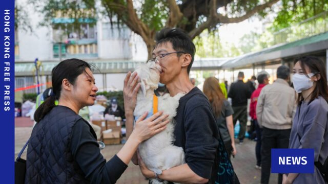 El viernes por la mañana, un periodista de HKFP también vio a una pareja reunida con su perro afuera del tribunal Wang Fook, uno de los raros momentos de alegría en la escena de una tragedia devastadora.