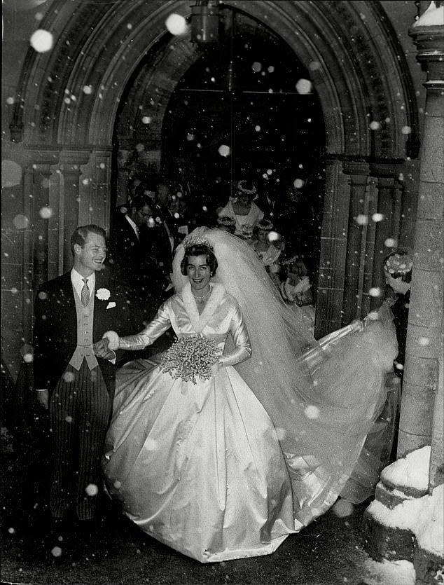 Lady Pamela y David Hicks abandonaron la Abadía de Romsey y fueron recibidos por una tormenta de nieve el día de su boda en 1960.