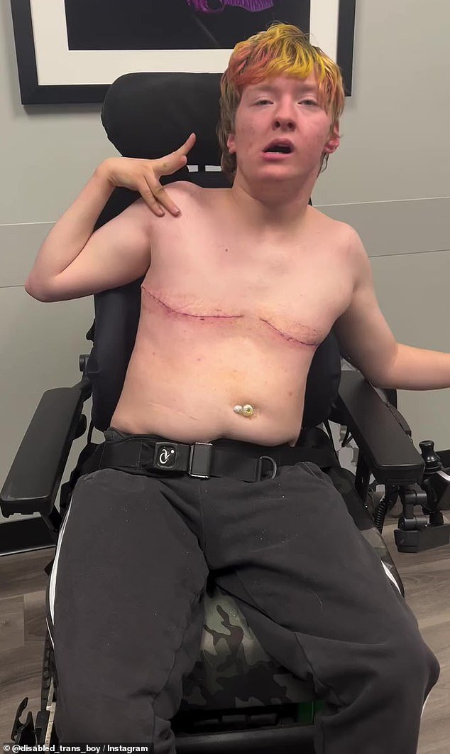 Una adolescente transgénero con parálisis cerebral que se volvió viral después de publicar sobre su cirugía de extirpación de senos le dijo a DailyMail.com que sabe lo que está haciendo y está contenta con su elección.