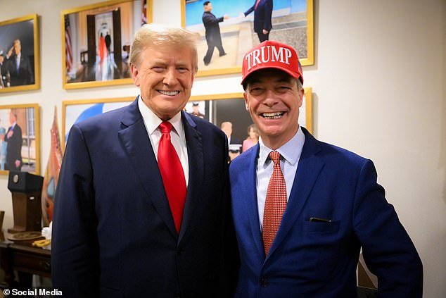 Reforma Nigel Farage (derecha) Mar-a-Lago del presidente estadounidense ha despejado su lealtad con el mejor amigo Donald Trump en casa