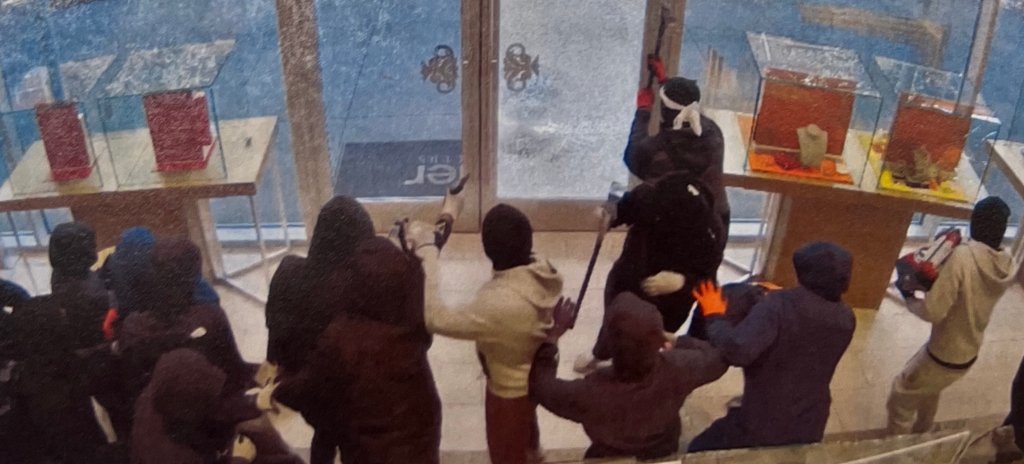 Para los observadores, pudo haber parecido un caos, pero los fiscales dicen que fue planeado cuidadosamente de una manera sofisticada diseñada para frustrar a la policía. Algunos de los sospechosos eran saqueadores, mientras que otros empuñaban martillos para romper vitrinas o apuntaban con armas a empleados o clientes. Se asignaron dos grupos de equipos de entrada, que escoltaban a los ladrones en coches sin matrícula hasta lugares predeterminados, donde les esperaban coches “limpios”, vehículos que no podían ser atados al lugar del robo.