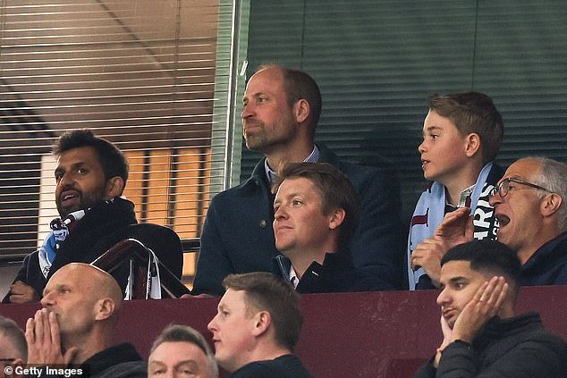 Príncipe de Wells, de 42 años, que es un partidario de una villa de Aston interesada, estaba justo detrás de Duke y Duquesa, viendo el juego ansiosamente desde las gradas mientras caminaba el juego