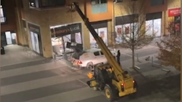 En este punto, los atacantes robaron un cajero automático completo de Sainsbury’s utilizando un manipulador telescópico.