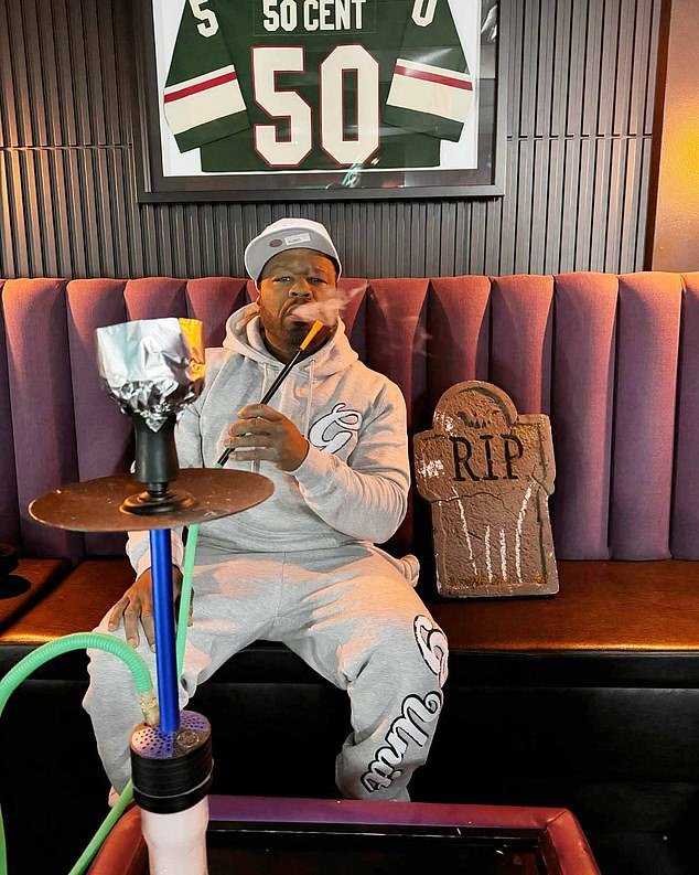 50 centavos – Nombre real Curtis James Jackson III – Miércoles compartió una foto de fumar una narguile mientras estaba sentado en un sofá junto a una tumba leída ‘RIP’.