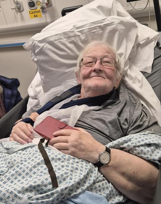 Derek Hadfield, de 76 años, se está recuperando en el hospital después de sufrir una fractura en el hombro y lesiones graves en el tobillo y la pierna cuando lo empujaron inicialmente al suelo, desde donde lo llevaron, dijo su conmocionada familia.