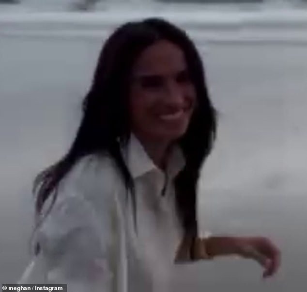 Meghan Markle lució elegante sin esfuerzo cuando hizo un dramático regreso a Instagram con un video de ella sonriendo en la playa cerca de Montecito.
