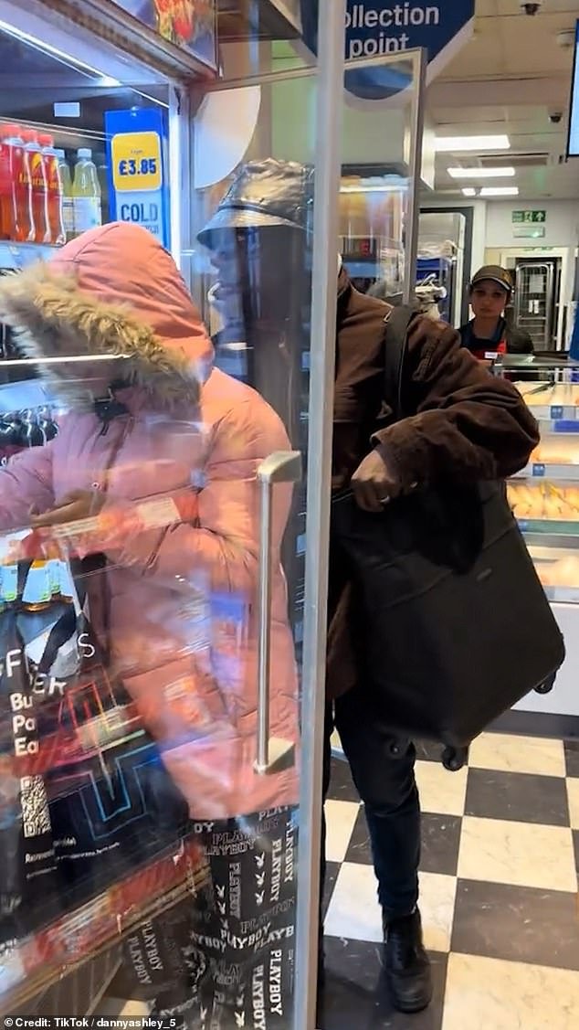 Al navegar por los estantes de la nevera en una rama del arco de Arco en Londres, el ladrón tomó un tiempo con una búbica totalmente negra, que parecía ser una baguette cálida en la mano.