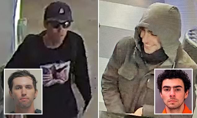 Los funcionarios han publicado fotos de sospechosos durante Manhant, vistiendo una camiseta negra con un agall de Tuck Ag en la bandera estadounidense