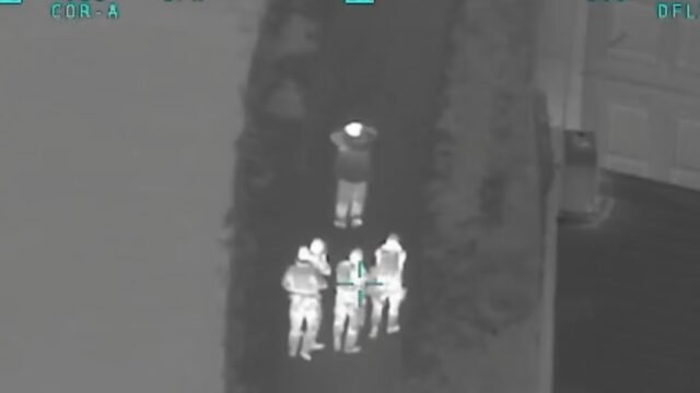 Las imágenes de la policía muestran a Michael Ormandy, de 34 años, con la cabeza entre las manos, rodeado por cuatro agentes, momentos después de que lo localizaron mientras caminaba por un canal en Merseyside.