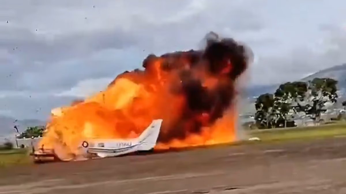 Un avión estalló en llamas poco después del despegue en un mortal accidente aéreo en una pista de Venezuela, matando a dos pasajeros.