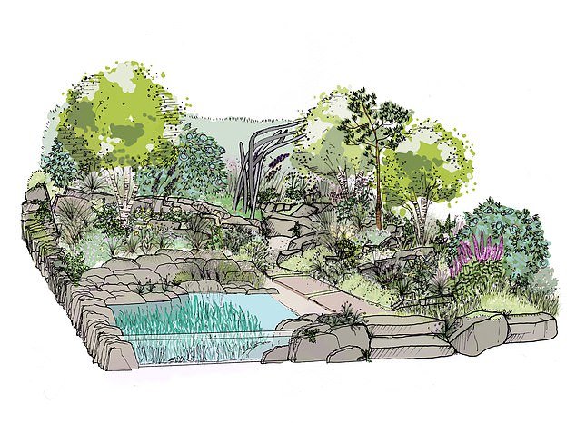 El jardín contará con afloramientos rocosos de arenisca, una piscina de agua salada, una playa de guijarros y zonas pantanosas, así como plantas raras nunca antes vistas en Chelsea, como la juncia, que prefiere los humedales.