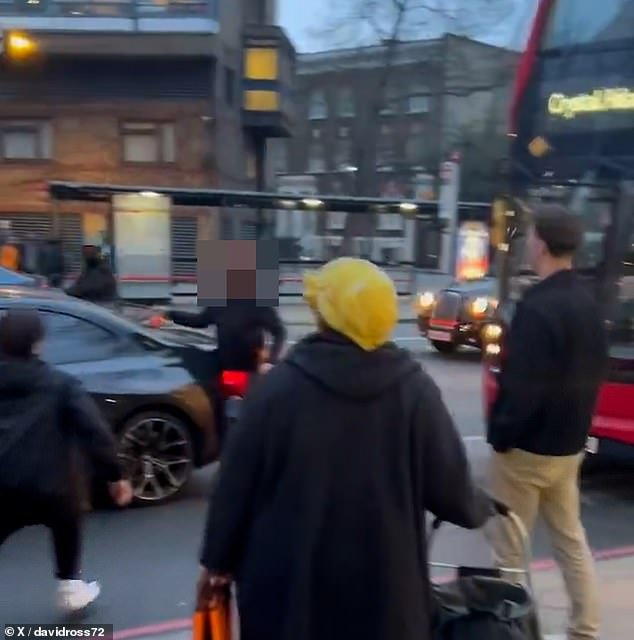 El ciclista impulsado por la cerradura de una bicicleta rompió el parabrisas de un vehículo en las calles de Londres durante una calefacción indignación de la calle.