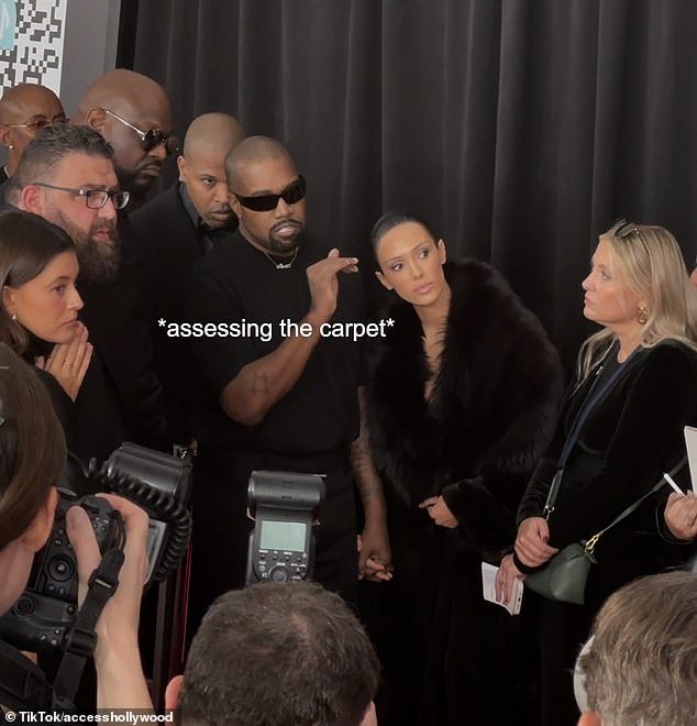 El comando Brask del lector de labios Kanne West se reveló al personal de la alfombra roja antes del sensor Beanka antes de impactar a Gramis antes de dispersar en el truco