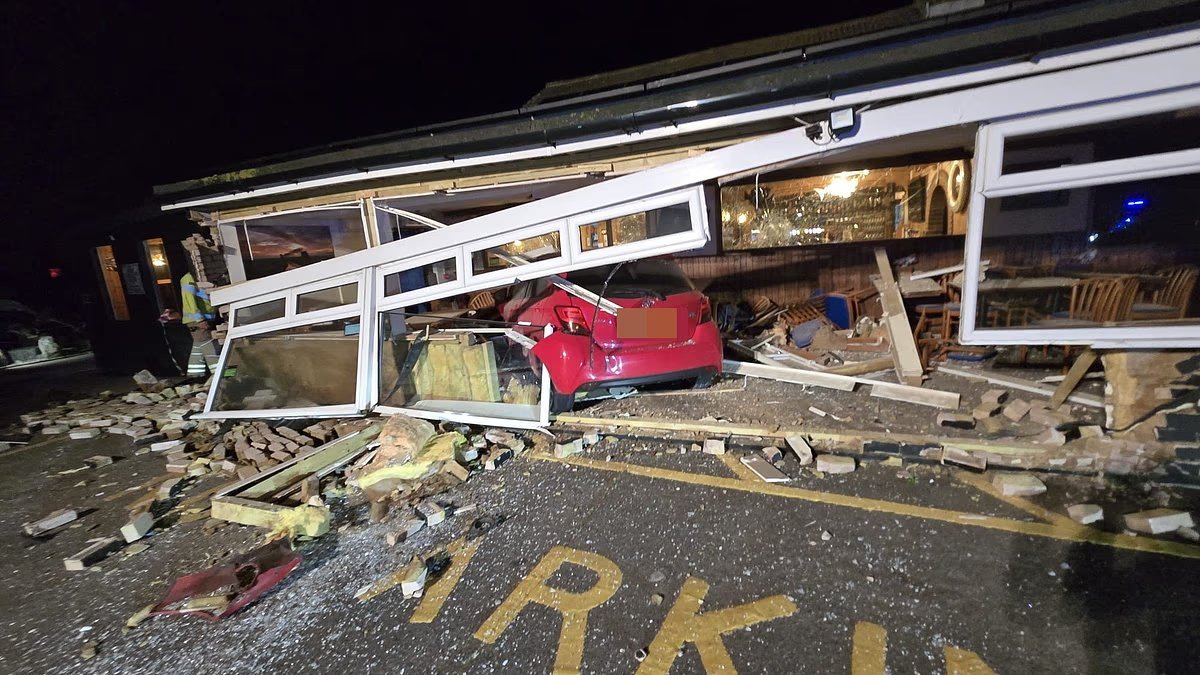 Poco después de la medianoche del 10 de agosto, imágenes de CCTV muestran un Toyota Yaris rojo irrumpiendo en el área del restaurante del Pilot Inn de propiedad familiar en Dungeness, Kent.