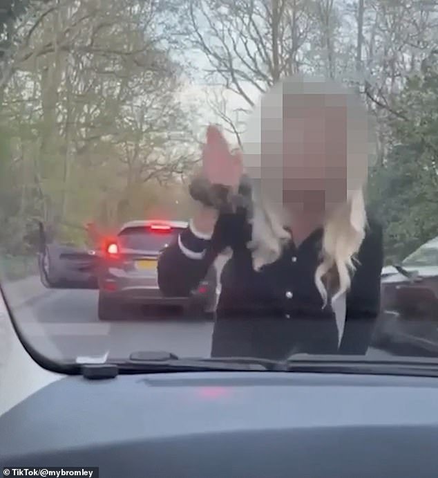 La mujer fue gritada mientras golpeaba Bonnet y se vio al conductor tomando una tormenta en el auto antes de maldecir.
