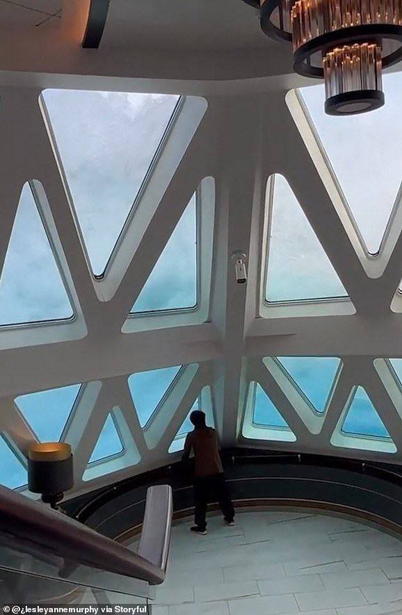 En su clip publicado en Instagram, se puede ver a varios pasajeros reuniéndose en ventanas grandes porque las olas azules fueron golpeadas violentamente antes de golpear la plataforma de visualización.