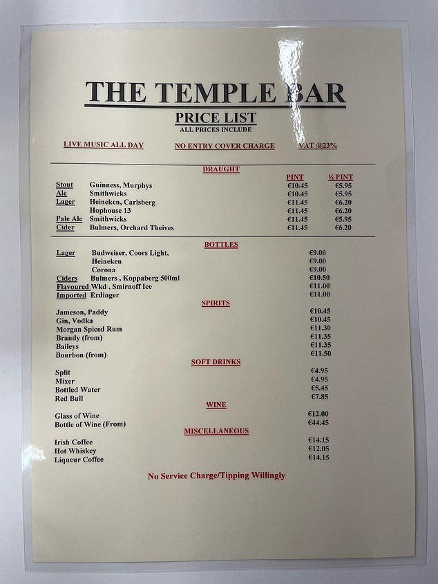 Cuando un cliente compartió un recibo por cuatro Guinness, surgió después de criticar el punto de acceso de otro bar del templo por precio ‘irrazonable’.