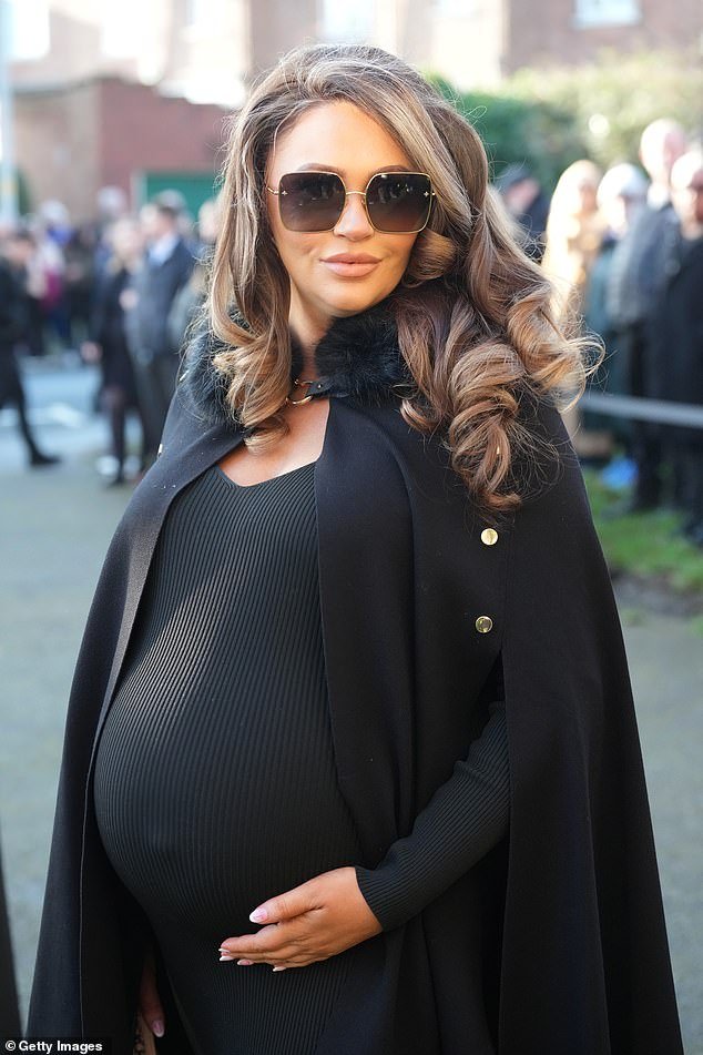 Para el funeral, la personalidad de la televisión Charlotte, de 32 años, con un vestido de figura que muestra la protuberancia de su creciente bebé; Su madre representa con Tracy Doson