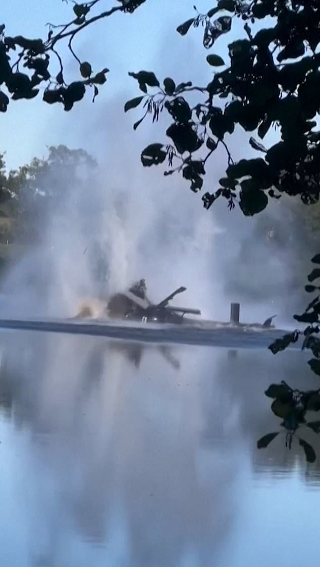 El avión de 26 años estaba operando una compleja operación de boquilla de agua el domingo por la noche cuando de repente se movió fuera de control y golpeó la superficie del estanque al lado.