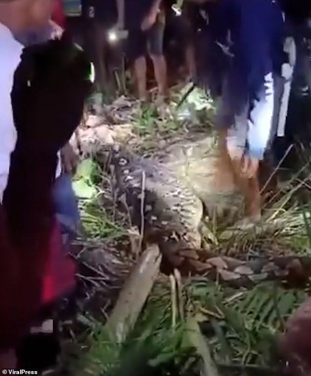 Los lugareños tenían miedo de lo peor cuando vieron que la serpiente de 26 pies pesaba por un gran bulto en el estómago.