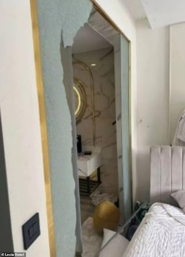 En su declaración, el hotel dijo: ‘Las imágenes adjuntas se ven en las imágenes, la cabina de la ducha de nuestra casa está completamente rota, nuestro televisor LCD fue retirado y no utilizado, la ventana exterior de la habitación estaba rota por un objeto que se dejó caer desde el interior, dos camas individuales separadas usadas como dos camas individuales separadas, y se preguntaban y se preguntaban, y mini -bbat, mini -e -. Las toallas en nuestras habitaciones no eran utilizables, el techo y las paredes laterales de la habitación tenían diferentes bebidas y marcas de comida y la casa estaba completamente pintada. ‘