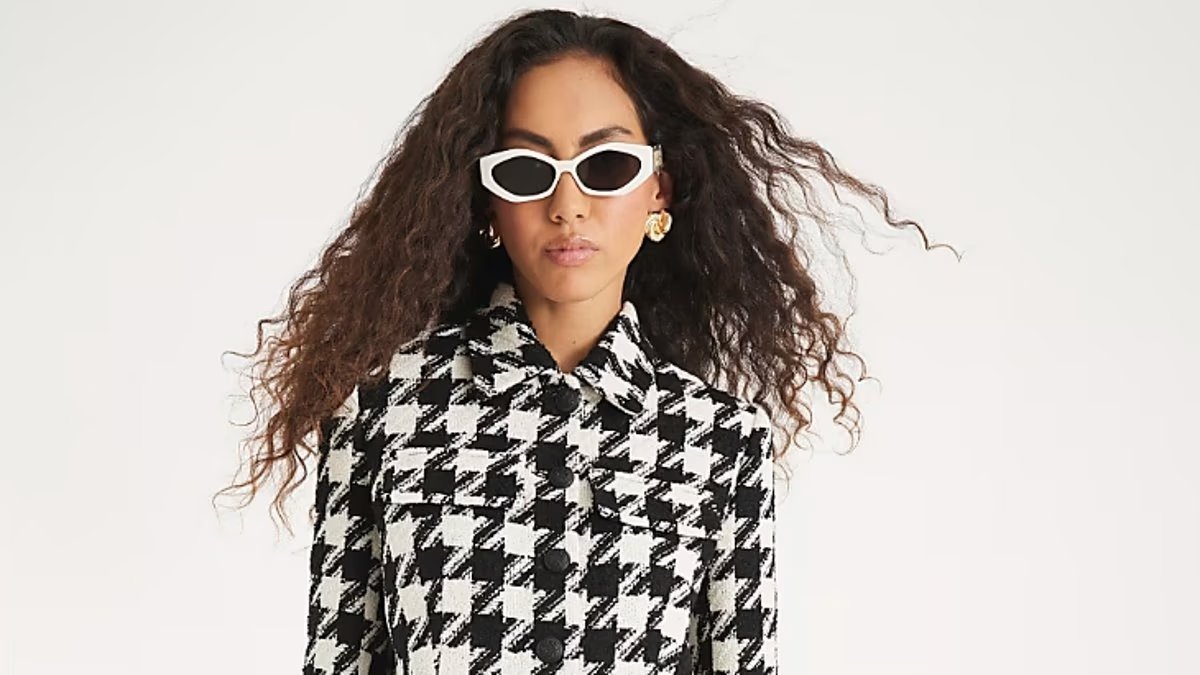 En algún otro lugar, M&S 90’s clavados al polaco Terminado con botones dorados brillantes con una chaqueta de tweed adecuada y una minifalda plateada, mientras Hobbs toma la tendencia en el patrimonio de anidación Su corte sin cuello y suave con la falda de corte A.