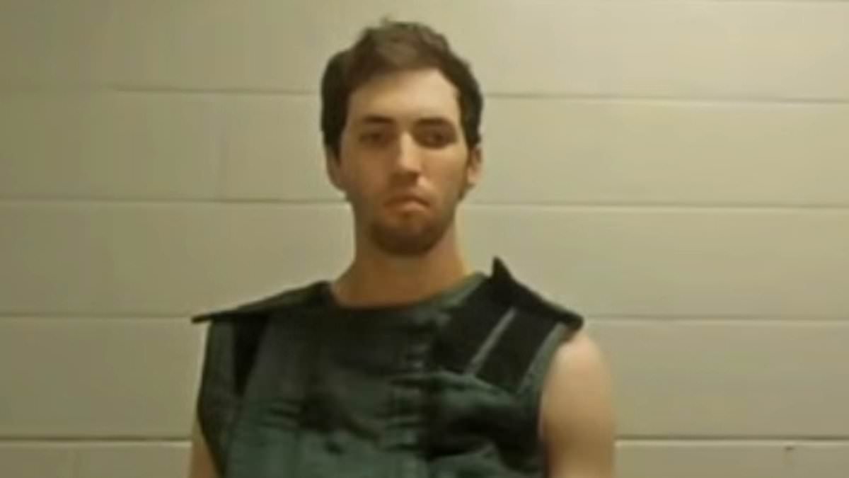 Tyler Robinson (22) está arrojando piedras en una pantalla cuando Charlie Cark apareció en la primera corte el martes