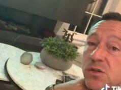 Corinne, de 28 años, lucía elegante con una blusa blanca y pantalones de campana color crema, mientras que Harbour, de 49 años, lucía una figura esbelta con un traje gris y zapatillas de deporte.