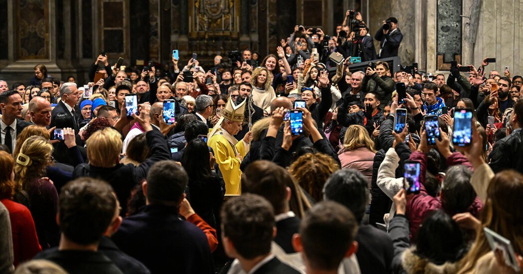 Papa León XIV Fieles asombrados bajo la lluvia Una disculpa el miércoles por la noche en la Plaza de San Pedro, tanto en inglés como en italiano, para aquellos que no pudieron entrar a la basílica para la primera misa de Nochebuena del pontífice nacido en Estados Unidos.