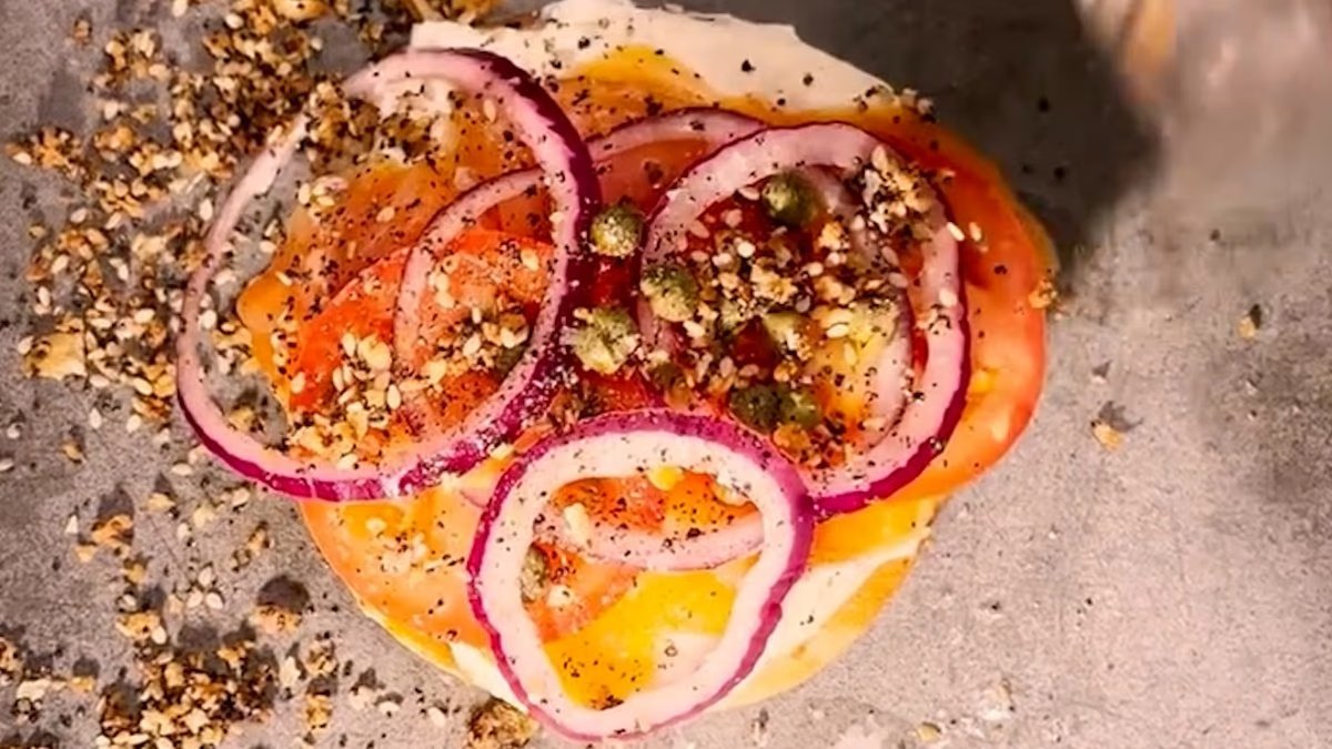 Su opción clásica, que se llevó la corona, combina salmón ahumado, queso crema, cebolla morada en rodajas, tomate y alcaparras.