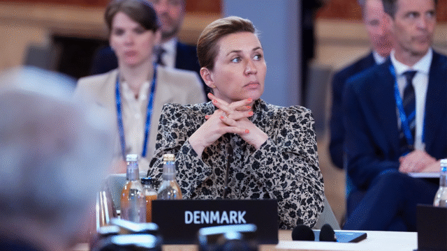 El primer ministro de Dinamarca, el compañero, Fredericksen, escuchó una reunión de la Fuerza de Campaña Conjunta (JF) el viernes 9 de mayo de 2025, Oslo. (AP)