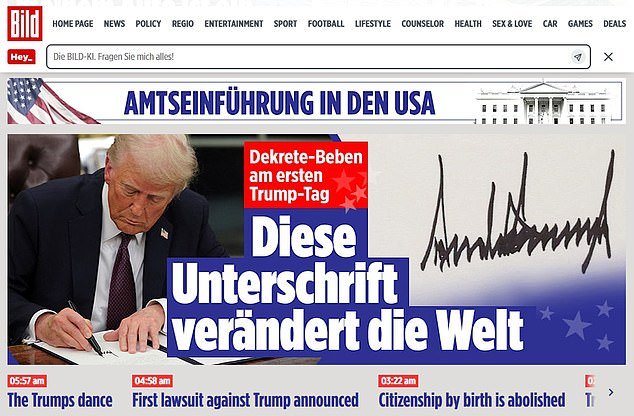 El tabloide alemán Bild elogió la serie de órdenes ejecutivas emitidas como presidente número 47 “ante los ojos del mundo” como “firmas que cambian el mundo”.