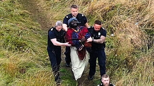 El “rey de la tribu africana” ha sido retirado del bosque escocés donde sus oficiales de inmigración han establecido campamentos durante varias semanas