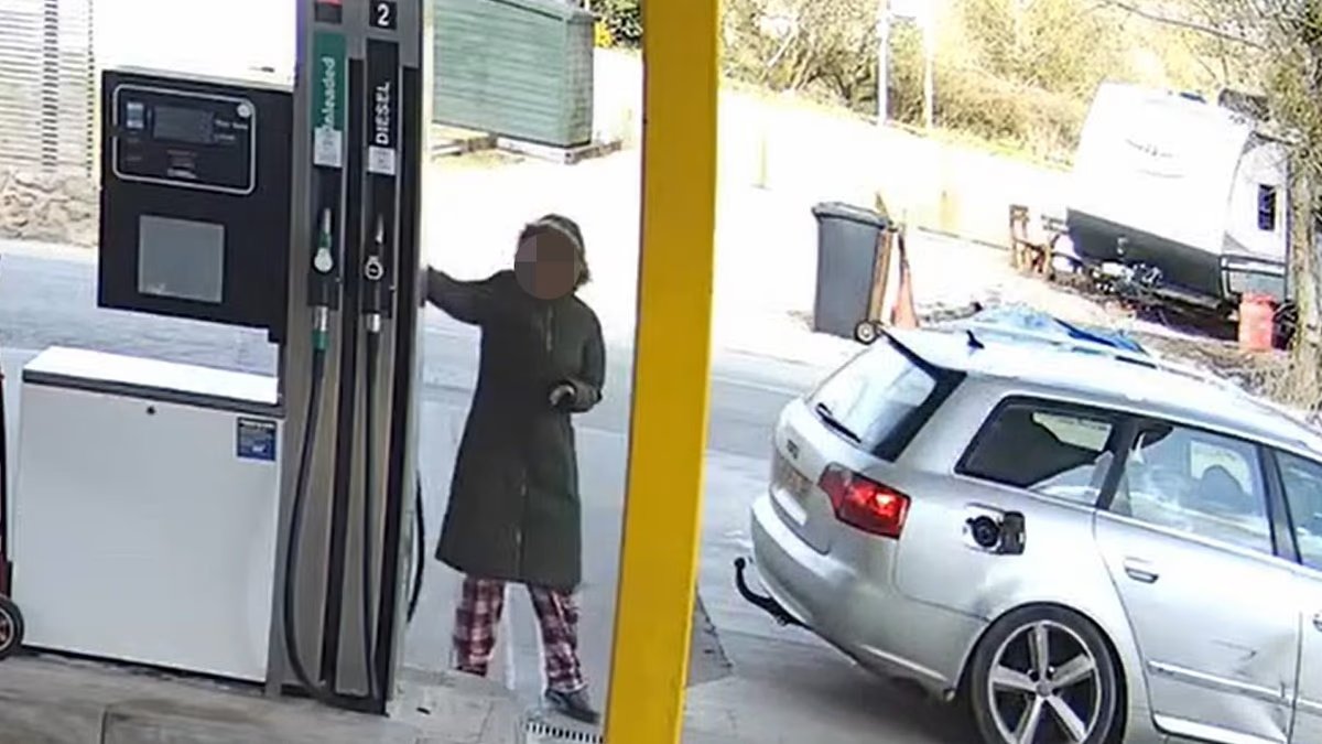 Una mujer en pijama fue vista robando gasolina en una gasolinera del norte de Gales.
