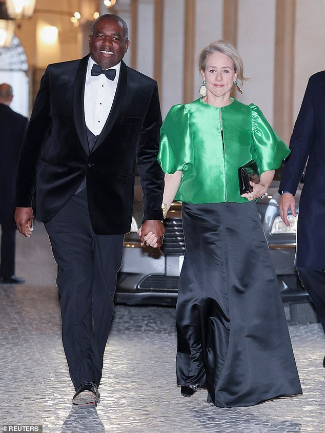 El secretario de Relaciones Exteriores, David Lammy y su esposa Nicola Green Taxi, pasaron tres días con el rey Charles con el rey Charles antes de llevarlo a Francia. Se representan a Lammy y Green para alcanzar un banquete estatal entre la visita del rey Charles y la reina Camilla a Camilla, en el Palacio del Corio en Roma, Italia, 9 de abril de 2025
