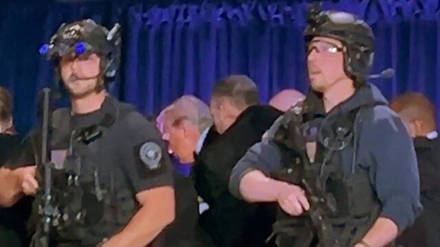 Trump fue escoltado fuera del salón por seguridad después de los disparos.
