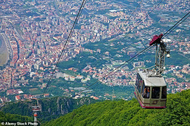 El teleférico de Mont Fighto conecta la ciudad histórica de Tihasik de Castlelama de Stabia con Monty Fighto.