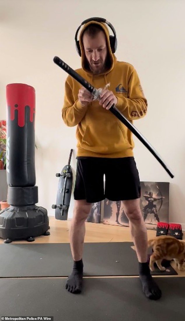 Old Bailey ha escuchado que Marcus Arduini Manzo (37) se ha alegado que fue delgada y disfrazada antes de comenzar una violencia de 20 minutos en el este de Londres. Dicción: Marcus Arduini Manjo con espada samurai
