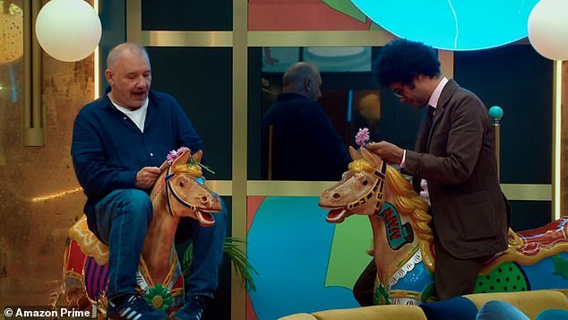 Durante el enfrentamiento final de la broma, el actor comediante Bob Mortimer y Richard Aid compartieron una interacción sonriente.